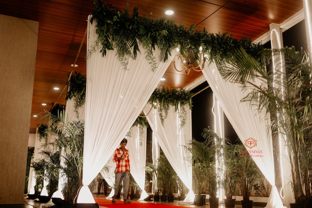 The bride’s entry with sparkling pyros lighting her path was a vision to behold one that had guests tearing up, phones raised, and hearts full. The emotional exchange between Shambavi and Pradeep during the muhurtham was so raw and real, even our crew paused to take it in.
